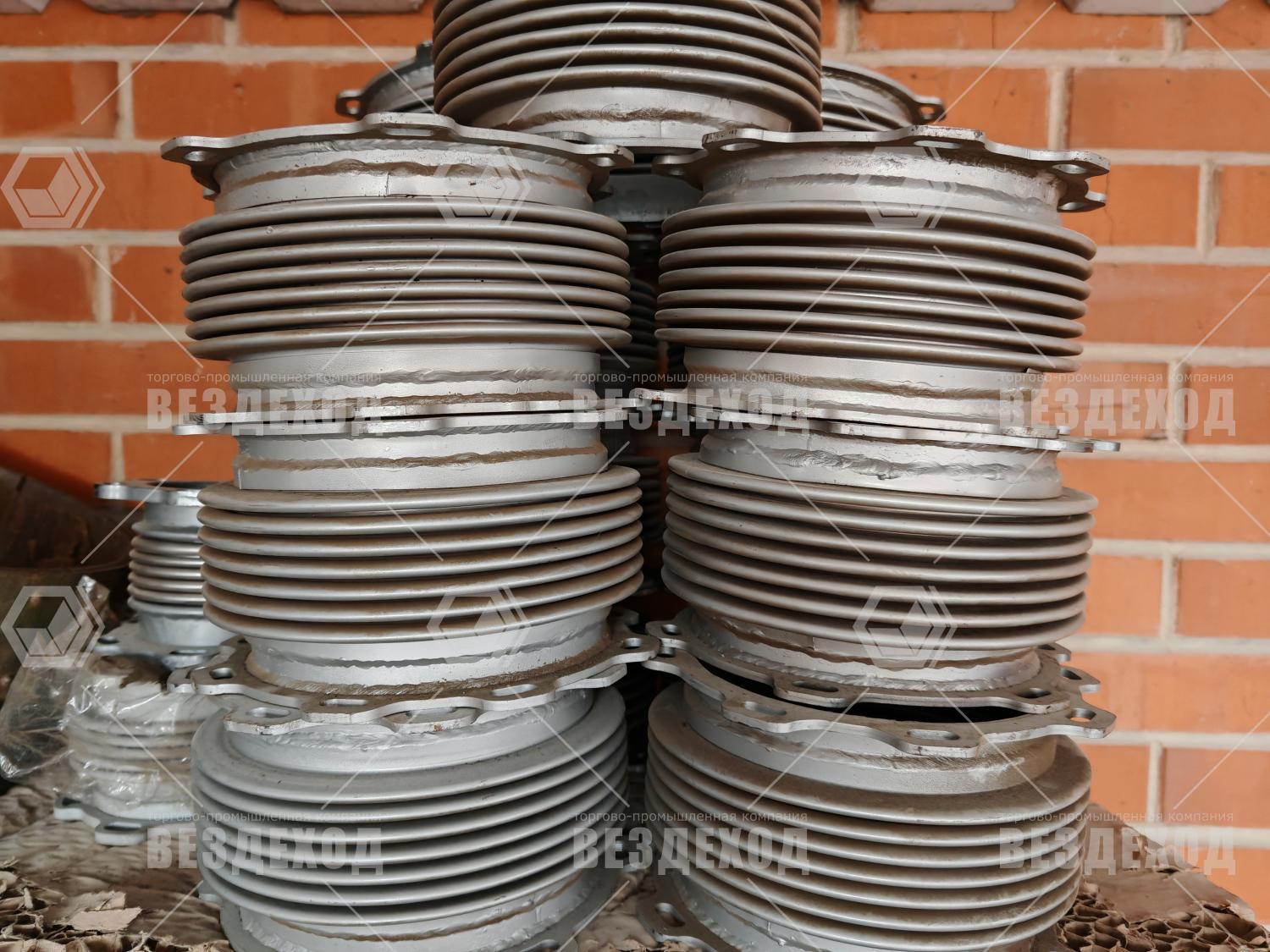 10.04.030 - Сильфон большой (6 отверстий) представляет собой муфту, обеспечивающую виброизоляцию. Элемент выполнен в форме полого металлического цилиндра, внутри которого в равной степени расположены углубления для крепления. На наружной поверхности цилиндра имеется 6 отверстий, размещённых на выступающих элементах в верхней и нижней части.