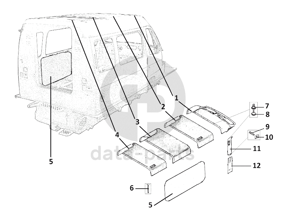 Обивка потолка, обивка боковых средних стоек