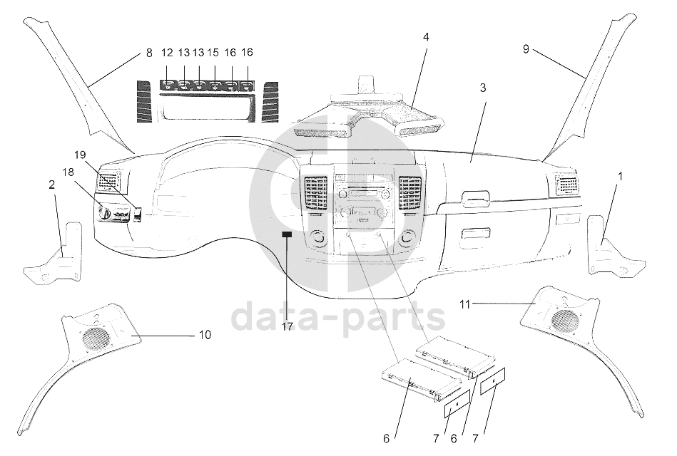 Приборная панель (торпеда), обивка передних стоек изнутри
