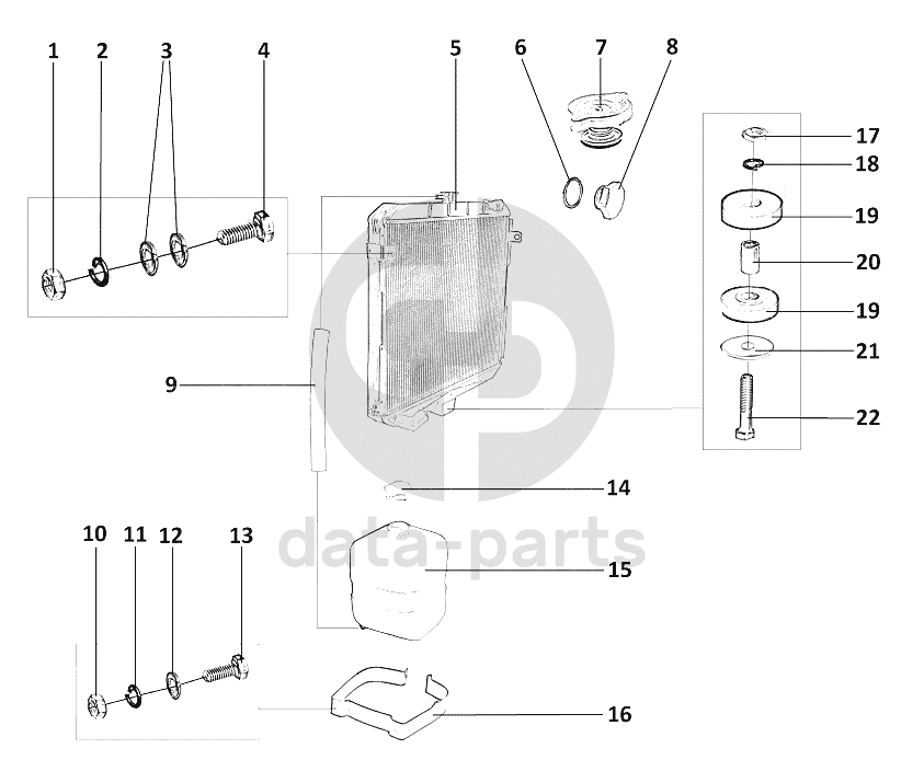 Основной радиатор охлаждения и расширительный бачок