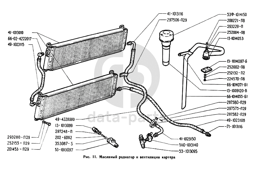 Масляный радиатор и вентиляция картера ГАЗ-71