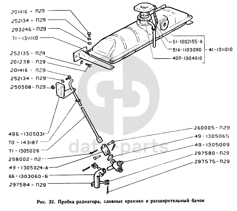 Пробка радиатора, сливные краники и расширительный бачок ГАЗ-71