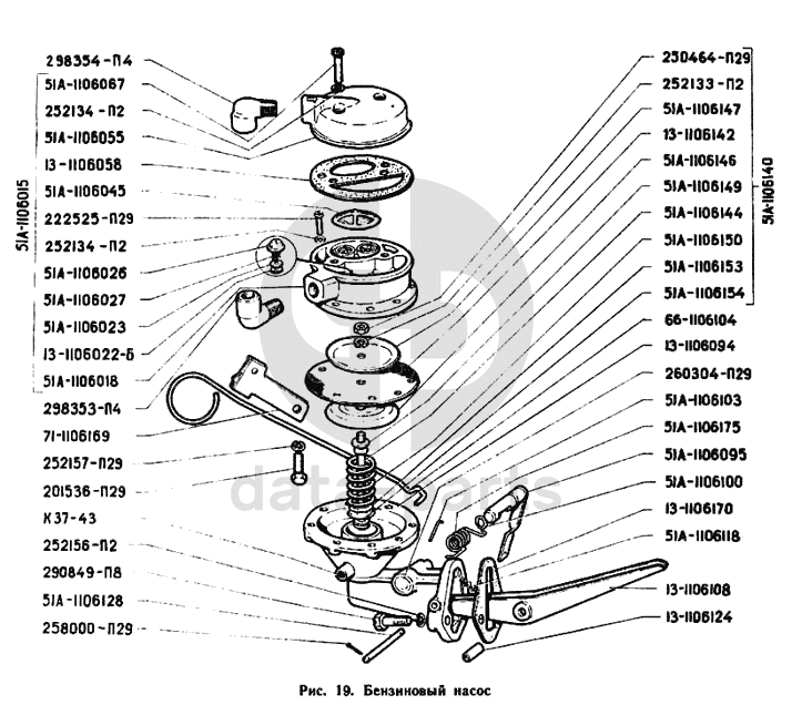 Валик ручного привода бензинового насоса с рычагом в сборе