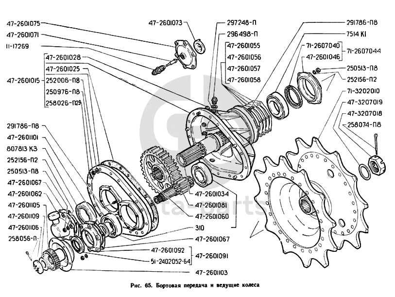 Подшипник вала ведомой шестерни бортовой передачи наружный в сборе (51-3104020)