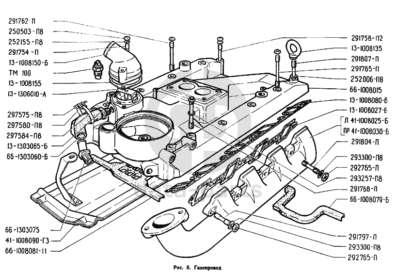 Шпилька М8х1х42 крепления выпускного патрубка водяной рубашки