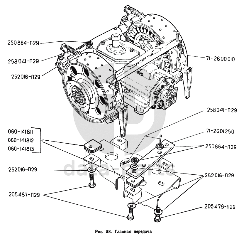 Главная передача, бортовые фрикционы и тормоза в сборе