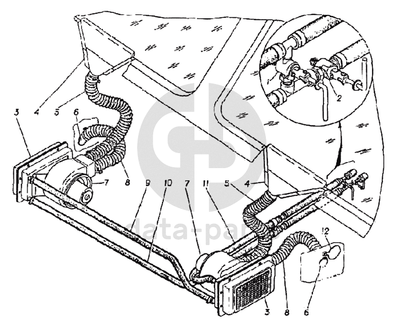 Система отопления кабины и обдува ветровых стекол к ГАЗ-34039